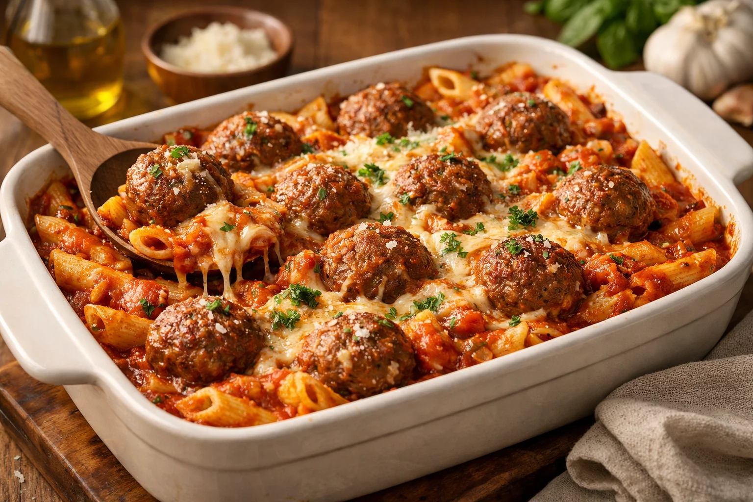If you want a slightly different take or extra inspiration, check out this helpful Dump and Bake Meatball Casserole – The Seasoned Mom for another home-style spin. Please leave a comment and a rating if you try it — I read every one and I genuinely want to hear whether you added too much garlic (guilty) or topped it with basil like a boss. 🙂