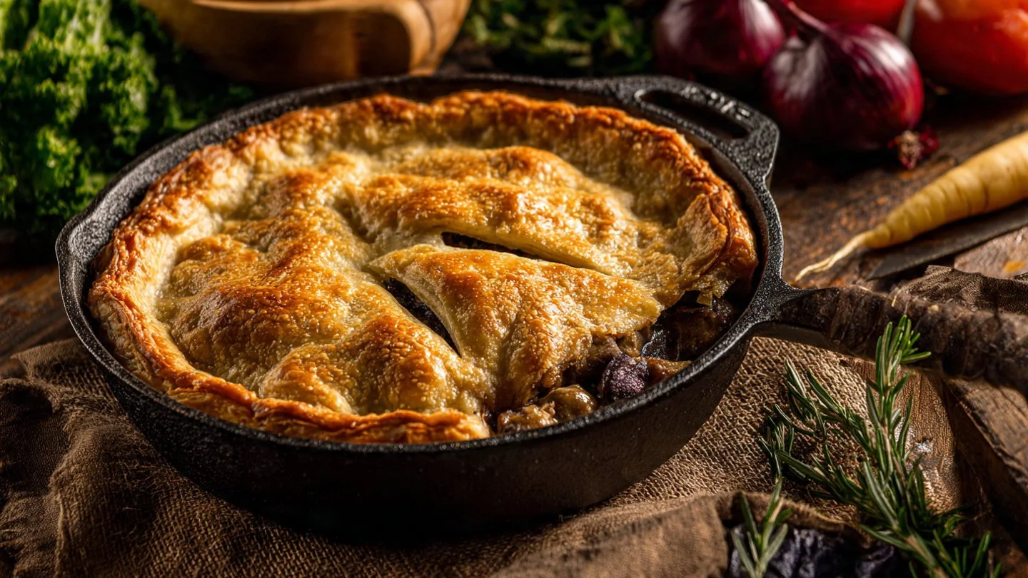 - Versatile and forgiving: Swap veg, use shortcrust instead of puff, or go vegetarian with mushrooms.
