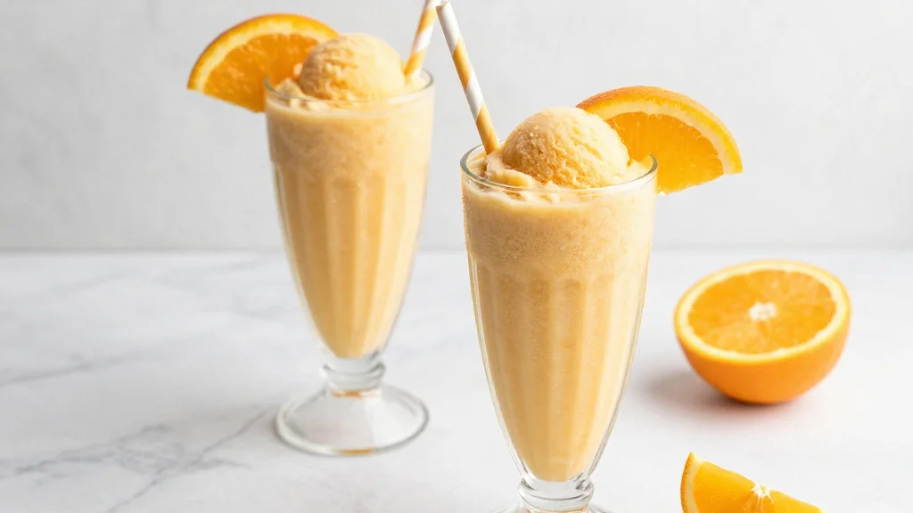 Serve in a chilled tall glass with a striped paper straw and a small wedge of orange on the rim to sell the nostalgia without trying too hard. If you present this at a brunch, add small name tags to glasses and place spoons for anyone who wants to scoop a thicker mouthful. Serve alongside light pastries or a simple fruit plate so the orange flavor complements rather than competes with the food on the table. Want to try a flight of mini flavors—classic, protein-boosted, and vegan—so guests can pick favorites? Do it; people love tiny samples.
