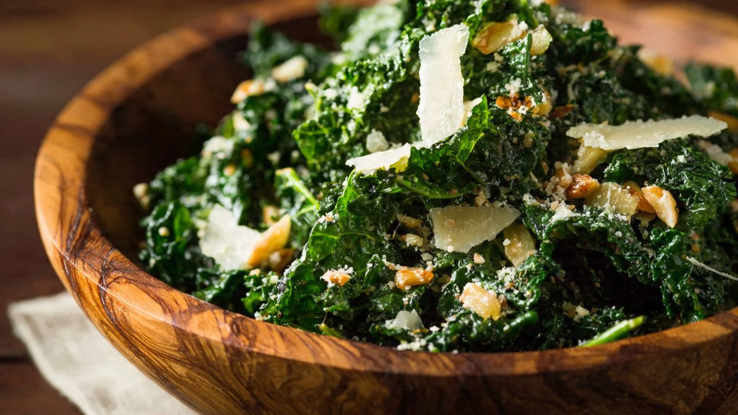 - Textural contrast — Soft, massaged kale + crunchy nuts + gritty Parmesan = chef’s kiss.